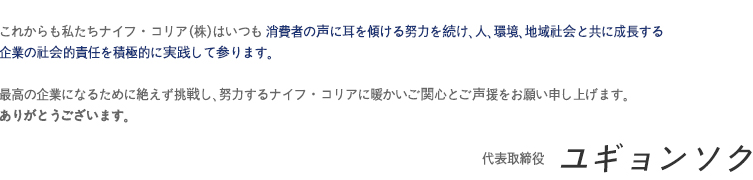 代表者 : ユギョンソク / 事業者名 : ナイフ・コリア(株) / 事業者番号 : 123-81-42660